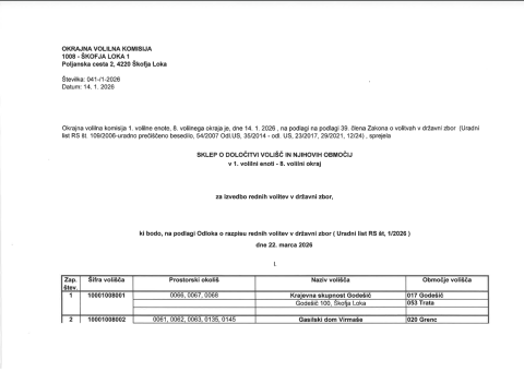 obveščamo vas, da nas je OVK obvestila, da (v skladu s sprejetim Sklepom o določitvi volišč za izvedbo rednih volitev v državni zbor, ki bodo, na podlagi odloka o razpisu rednih volitev v državni zbor izpeljane naslednjo nedeljo 22. marca 2026) lokacija volišča št. 20 ostaja lokacija v prostorih gostilne Pri Kajbitu, Zminec 5, Škofja Loka.