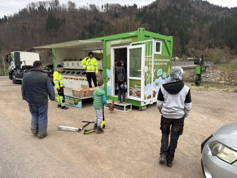 To soboto, 25. aprila 2026 – bo Komunala Škofja Loka nadaljevala z akcijo zbiranja odpadkov s Potujočo zbiralnico in izmenjavo knjig po Poljanski dolini.